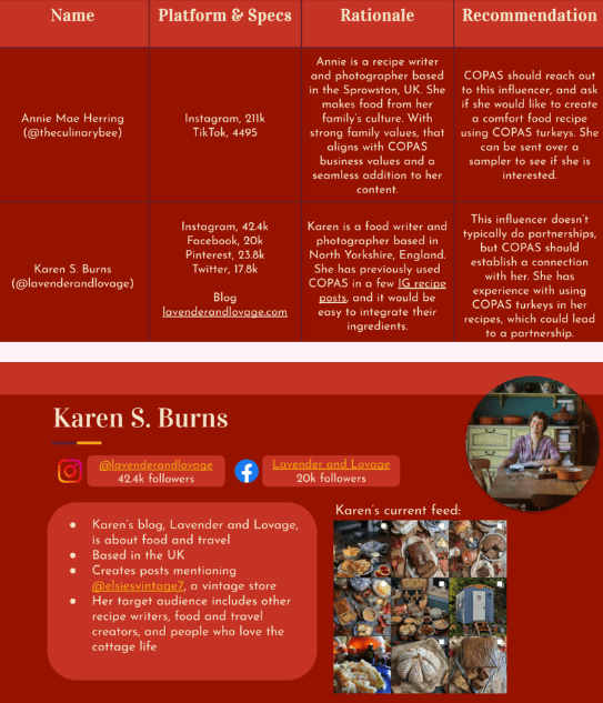 My team and I worked on a social media audit for COPAS, a UK-based food and beverage company. This included influencer identification, external research report, and providing actionable recommendations.